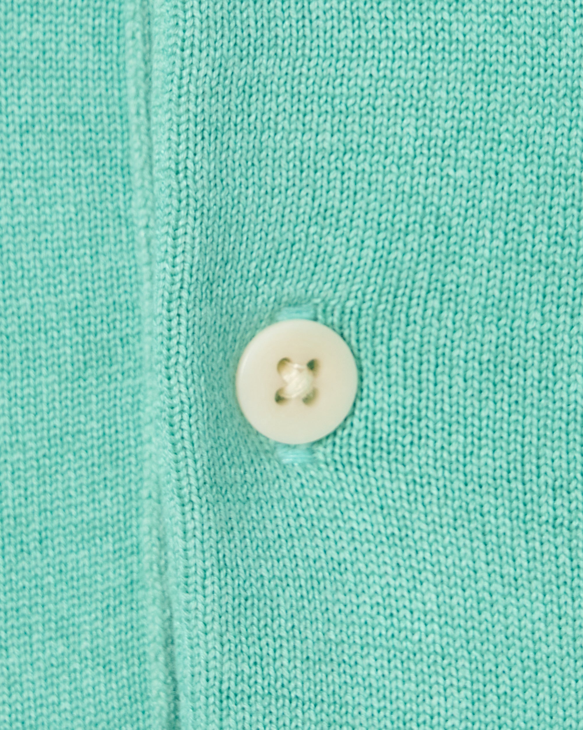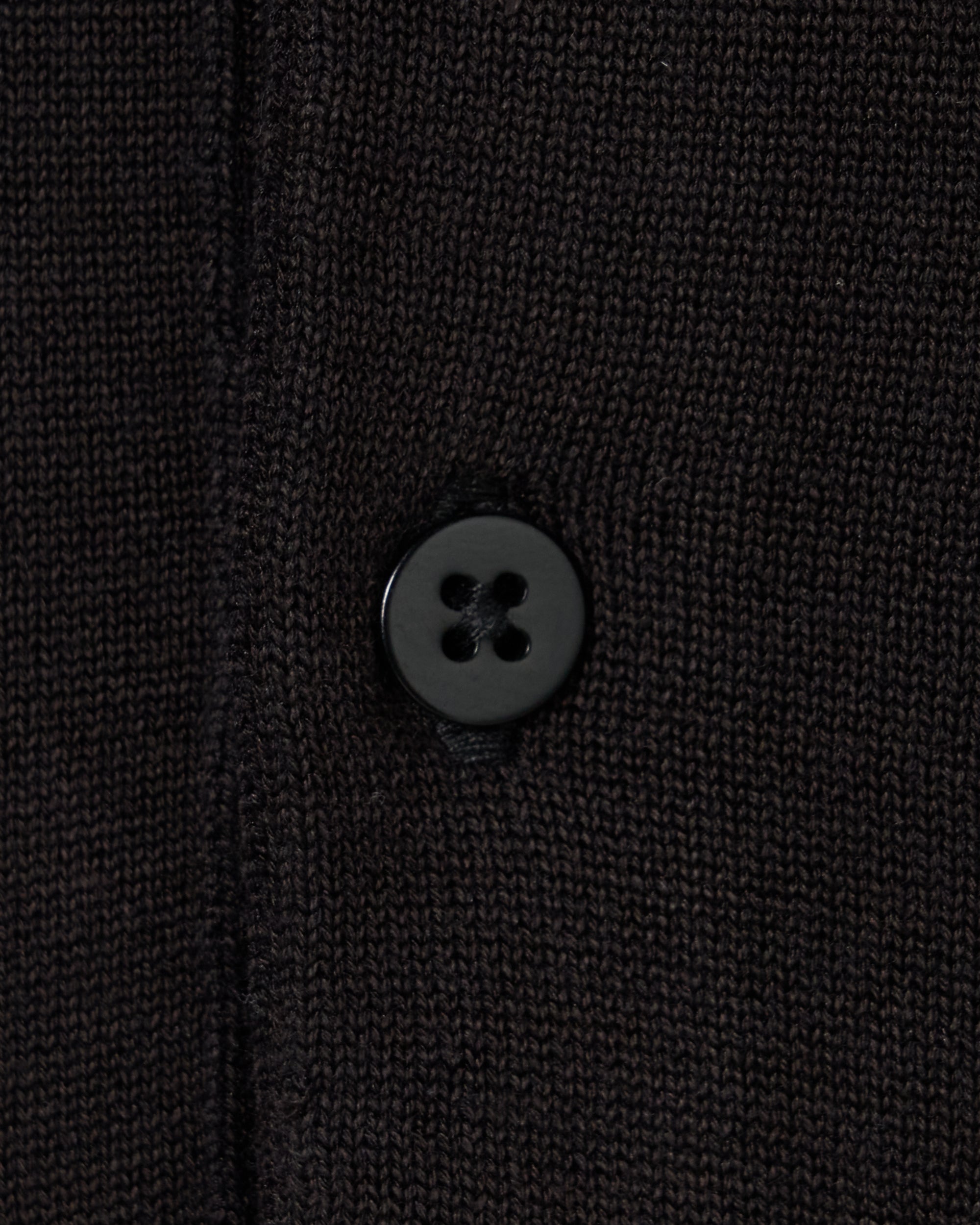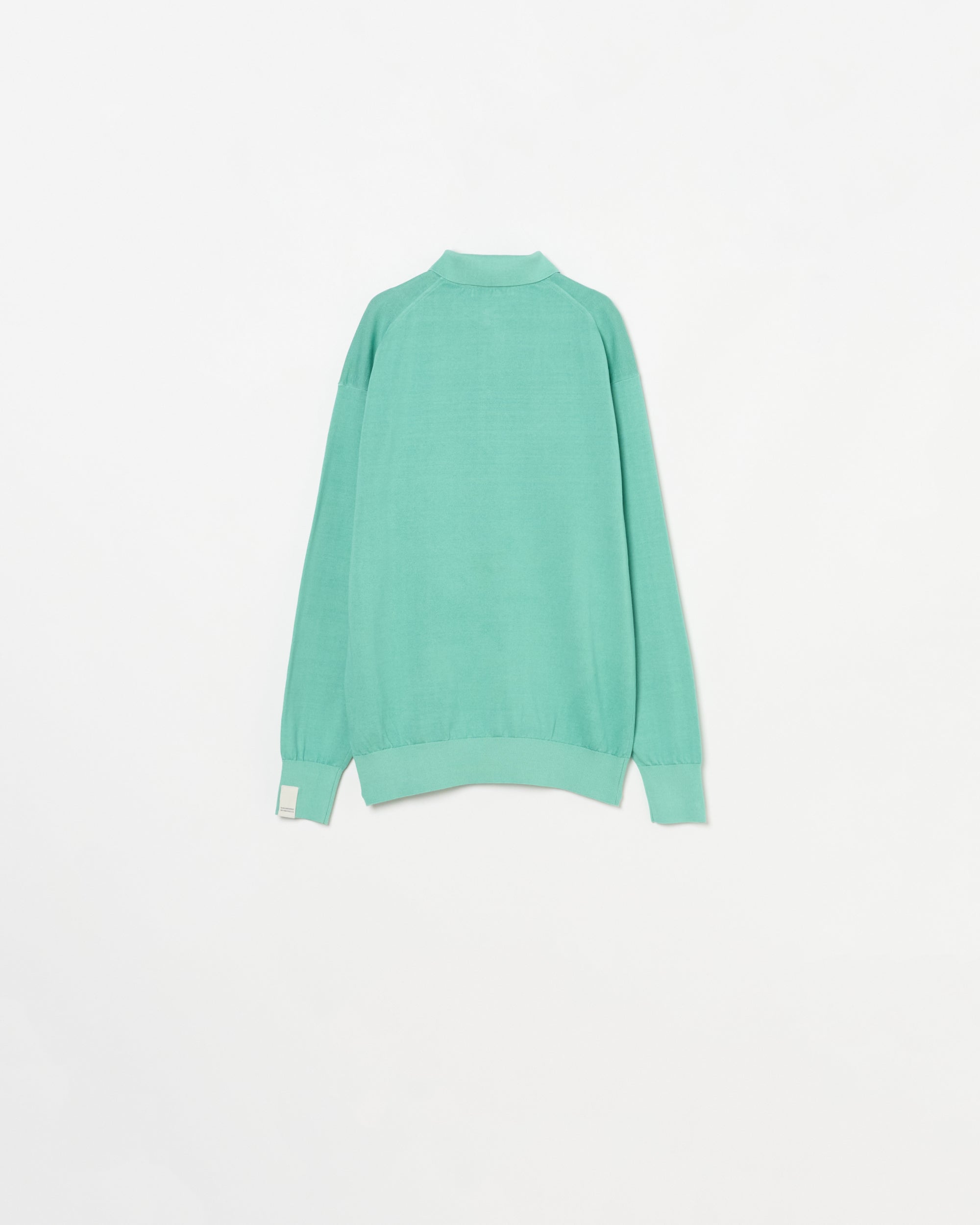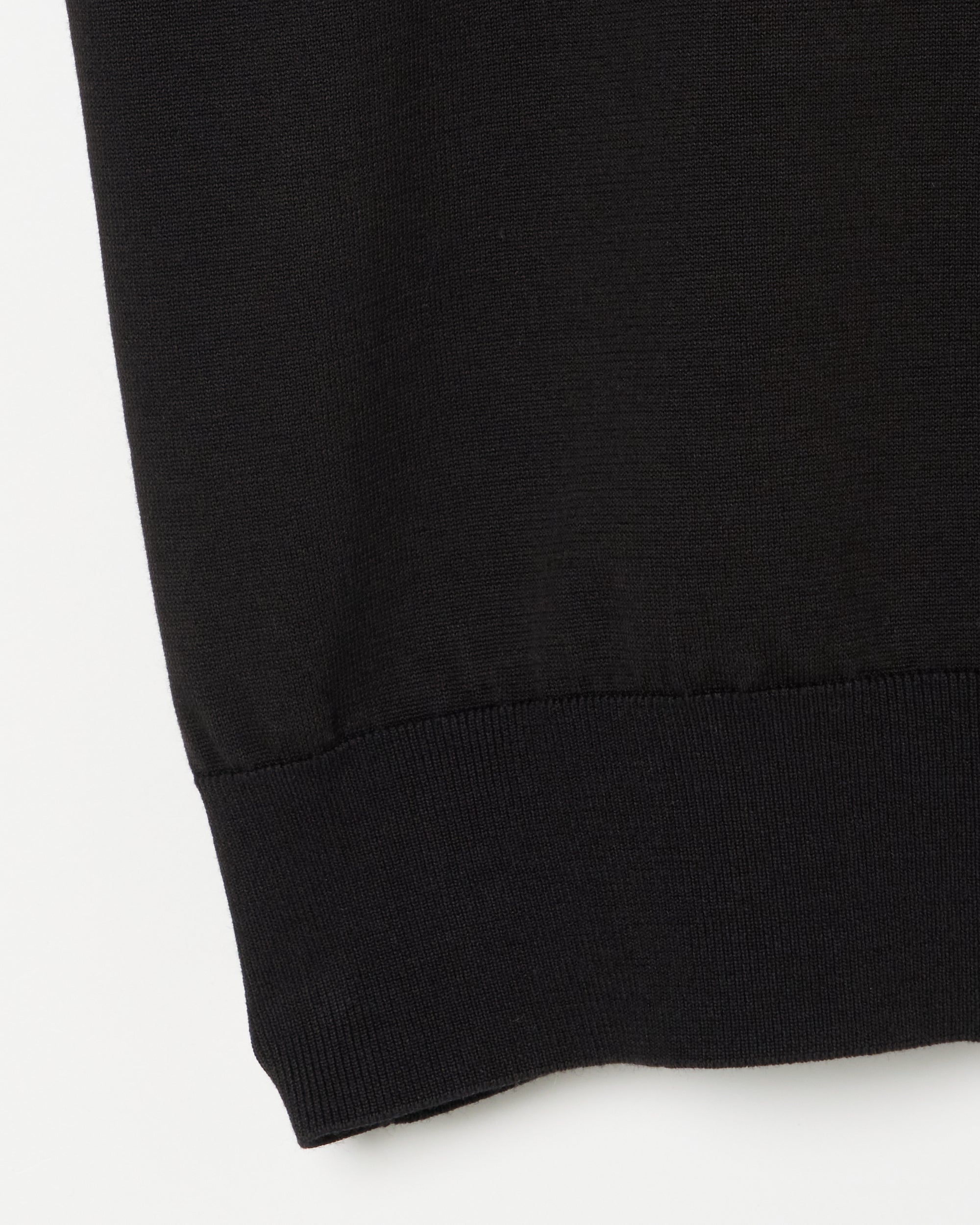 表はシルク、裏はコットン強撚糸を使用し、製品で染めることで独特の色ムラと経年変化を表現しました。表のシルクが光沢感のあるフェード感(フィブリル)と裏の強撚糸が肌離れのよいドライなタッチを演出し清涼感のあるニットに仕上げました。