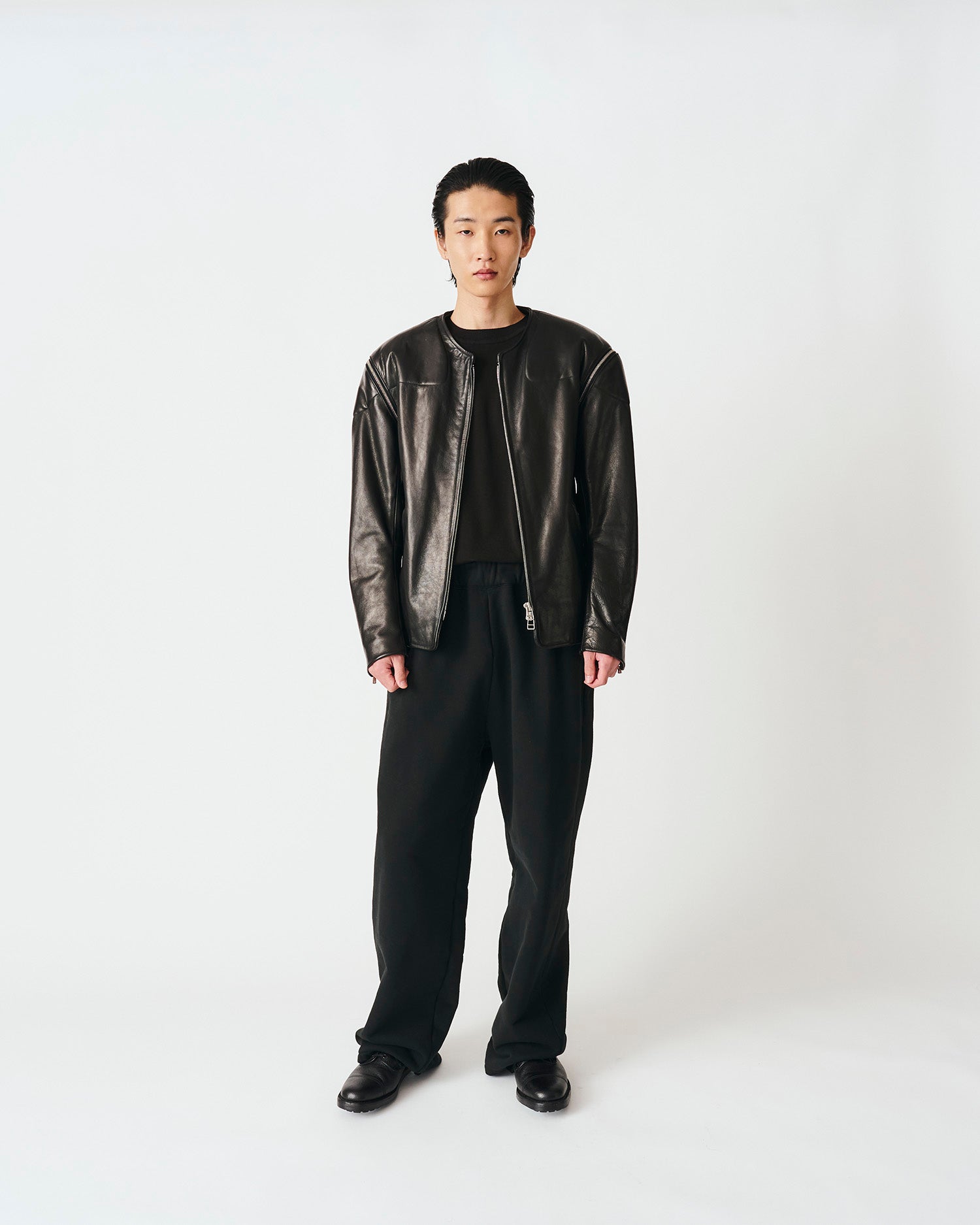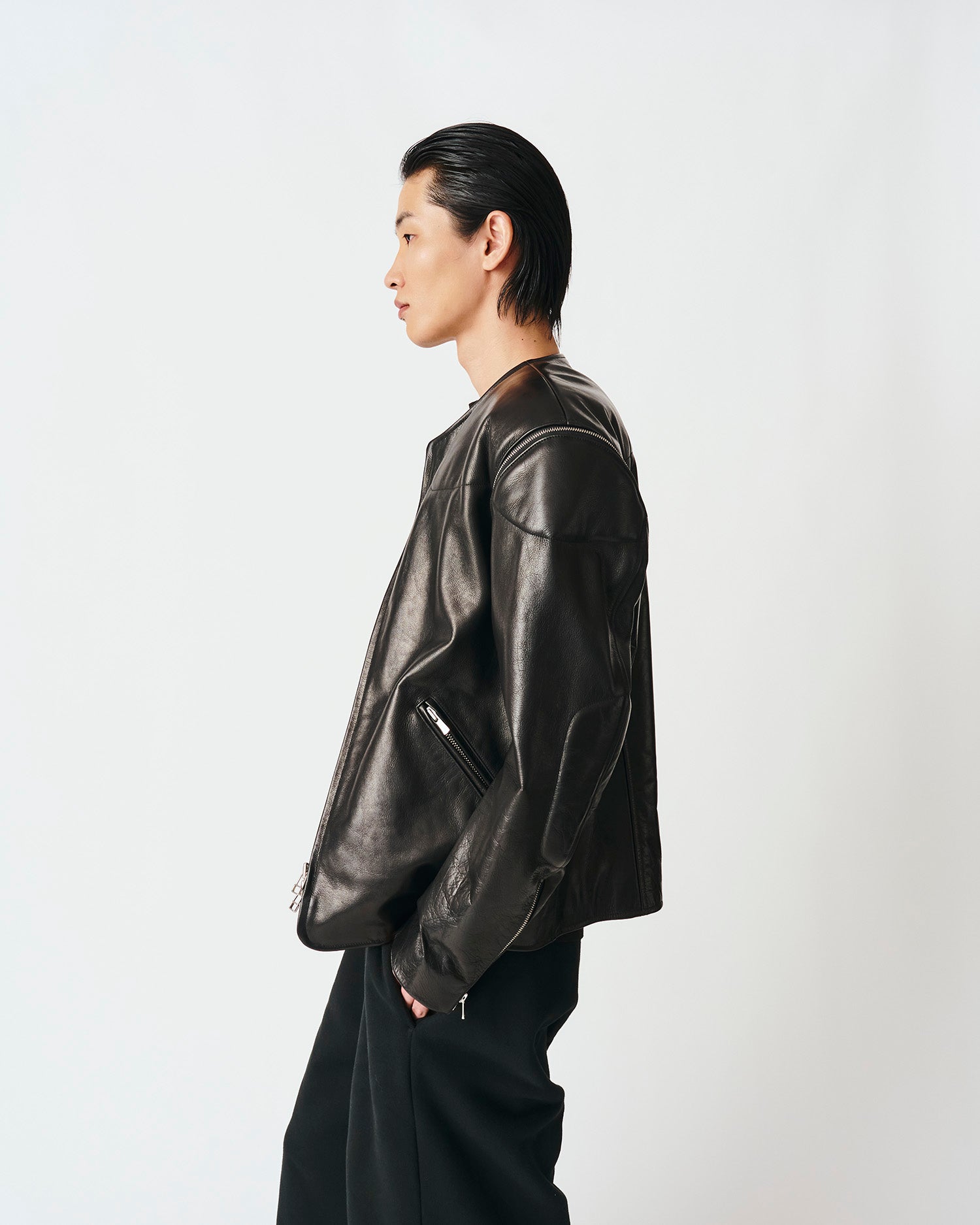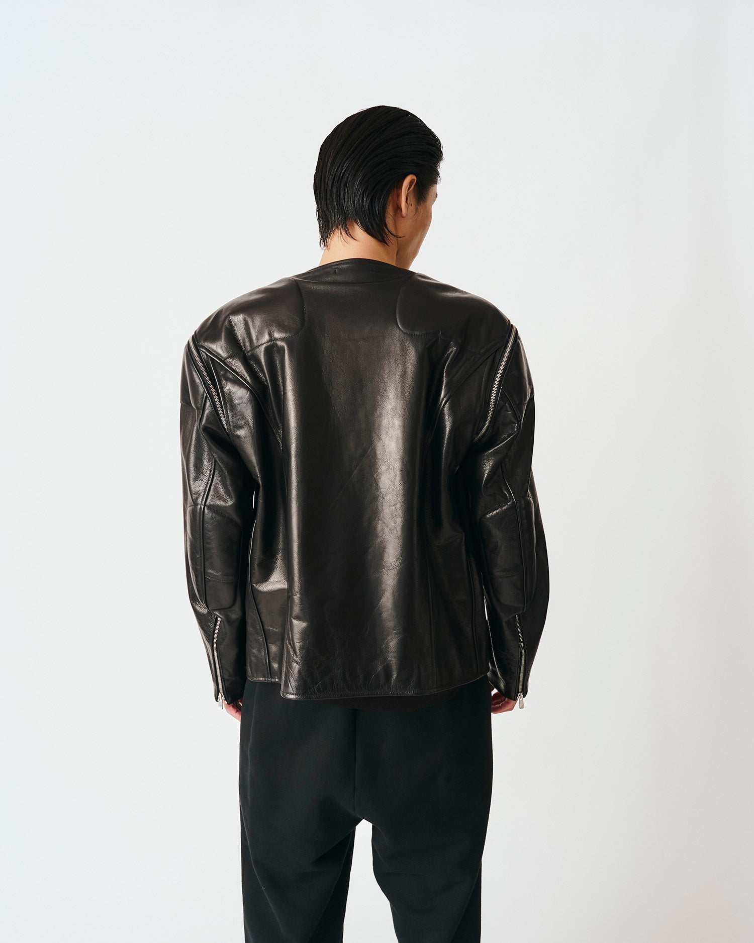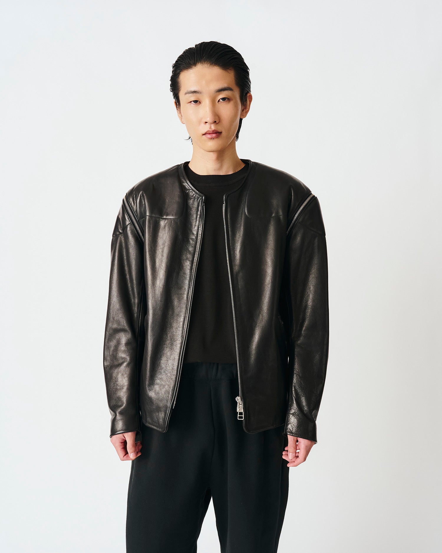 COLLARLESS LEATHER BLOUSON