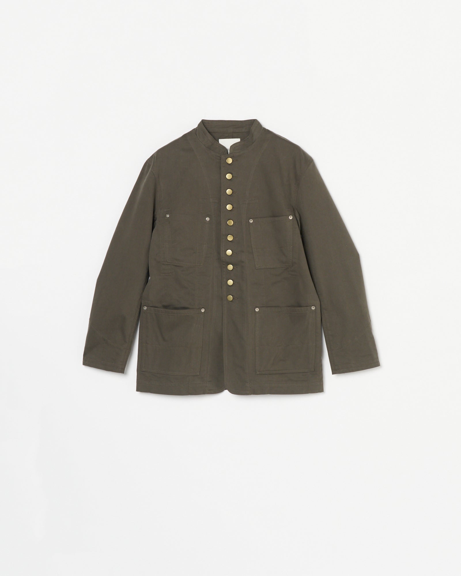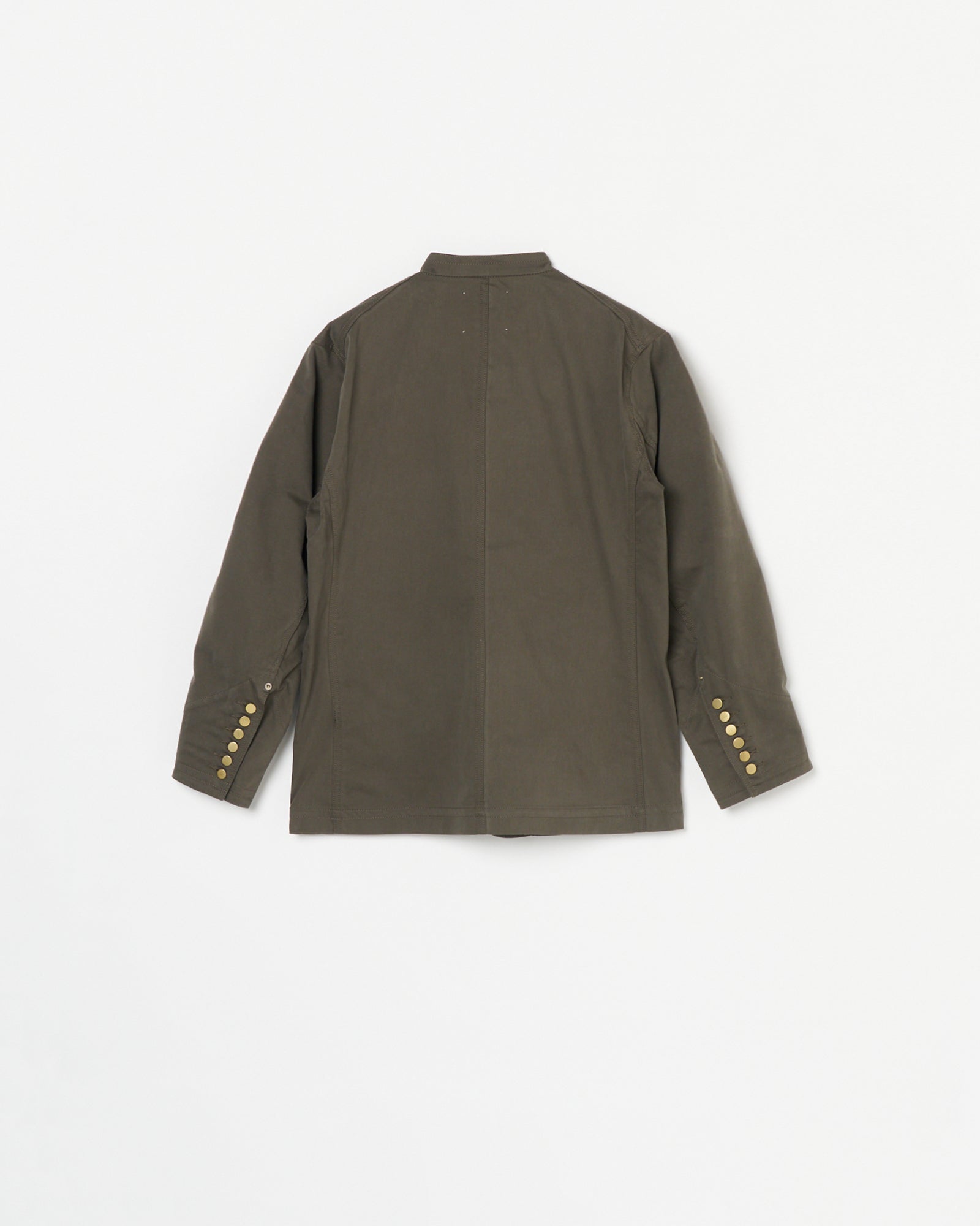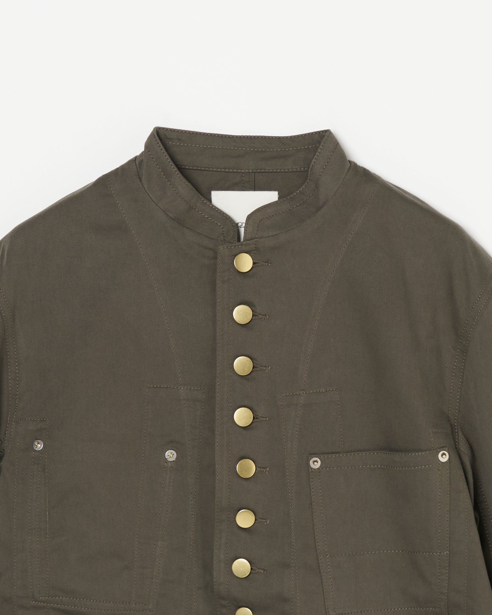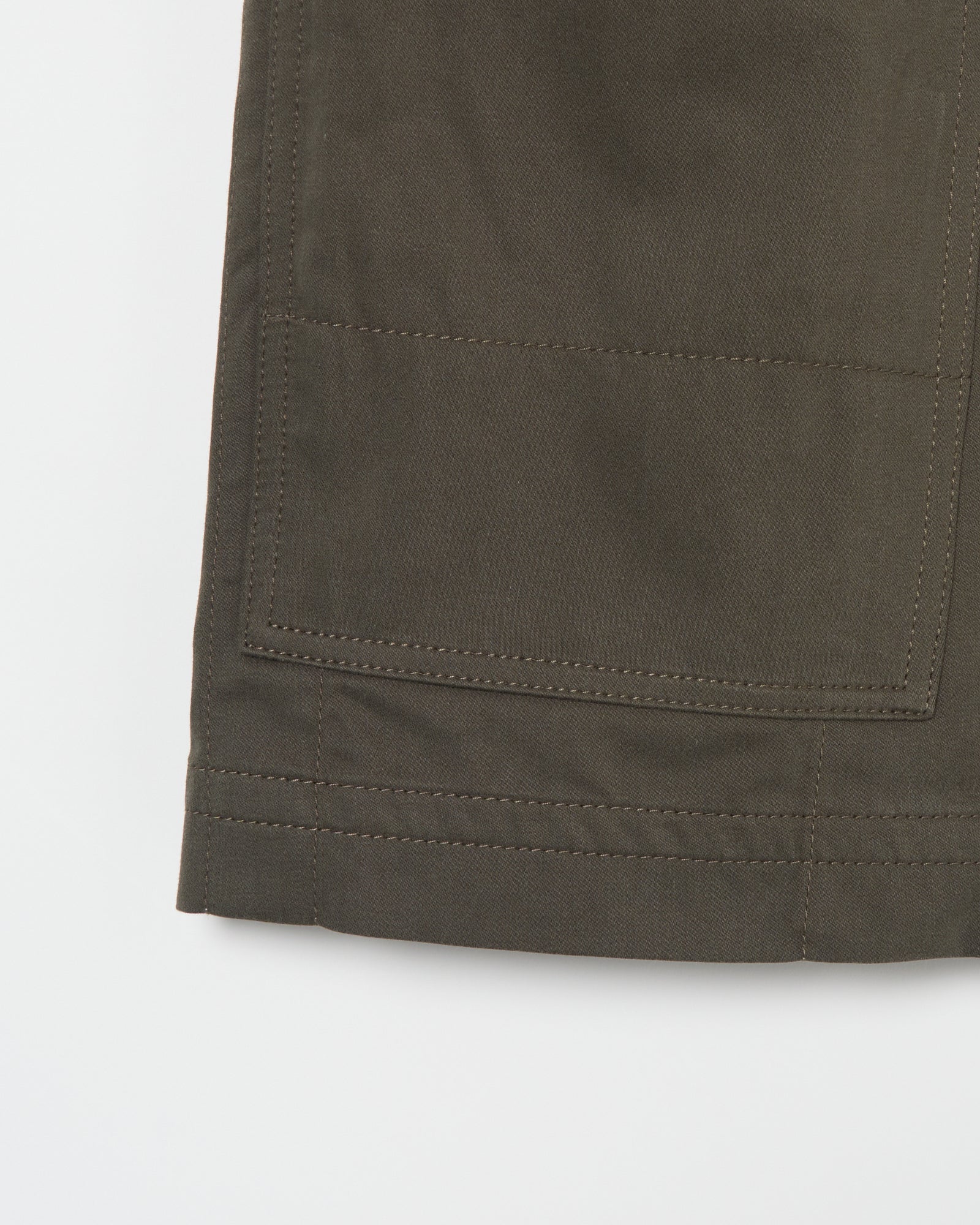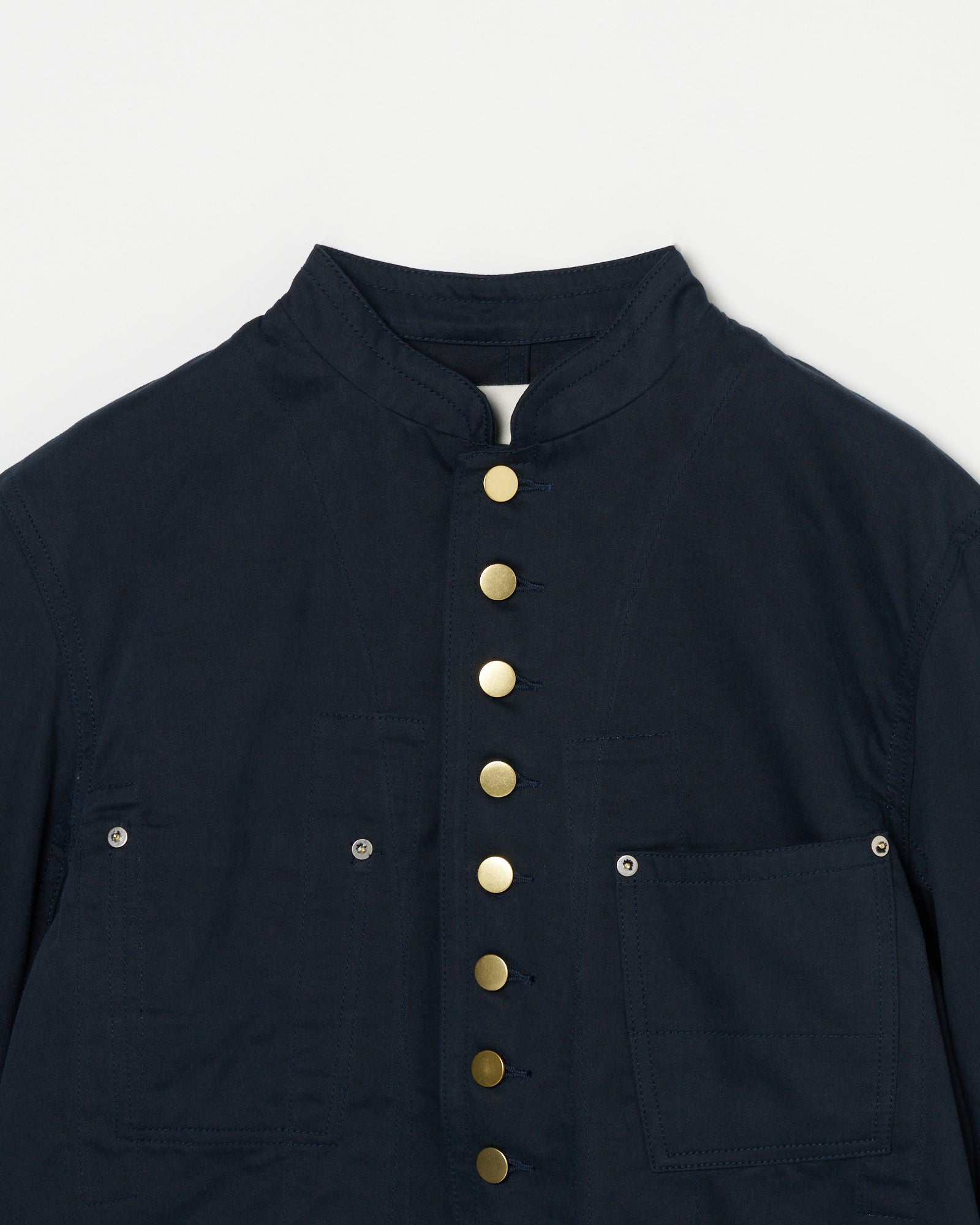 特殊なニドム加工を施したコットンサテン素材を使用したカバーオールです。生地表面にピーチ加工を施しパウダータッチとで上品ながら経年変化が特徴のです。