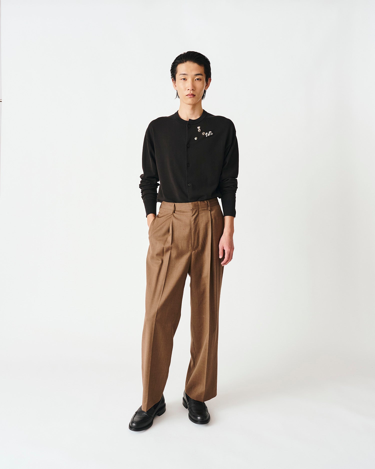 極薄のウールシルクの素材を使用したトラウザーです。
