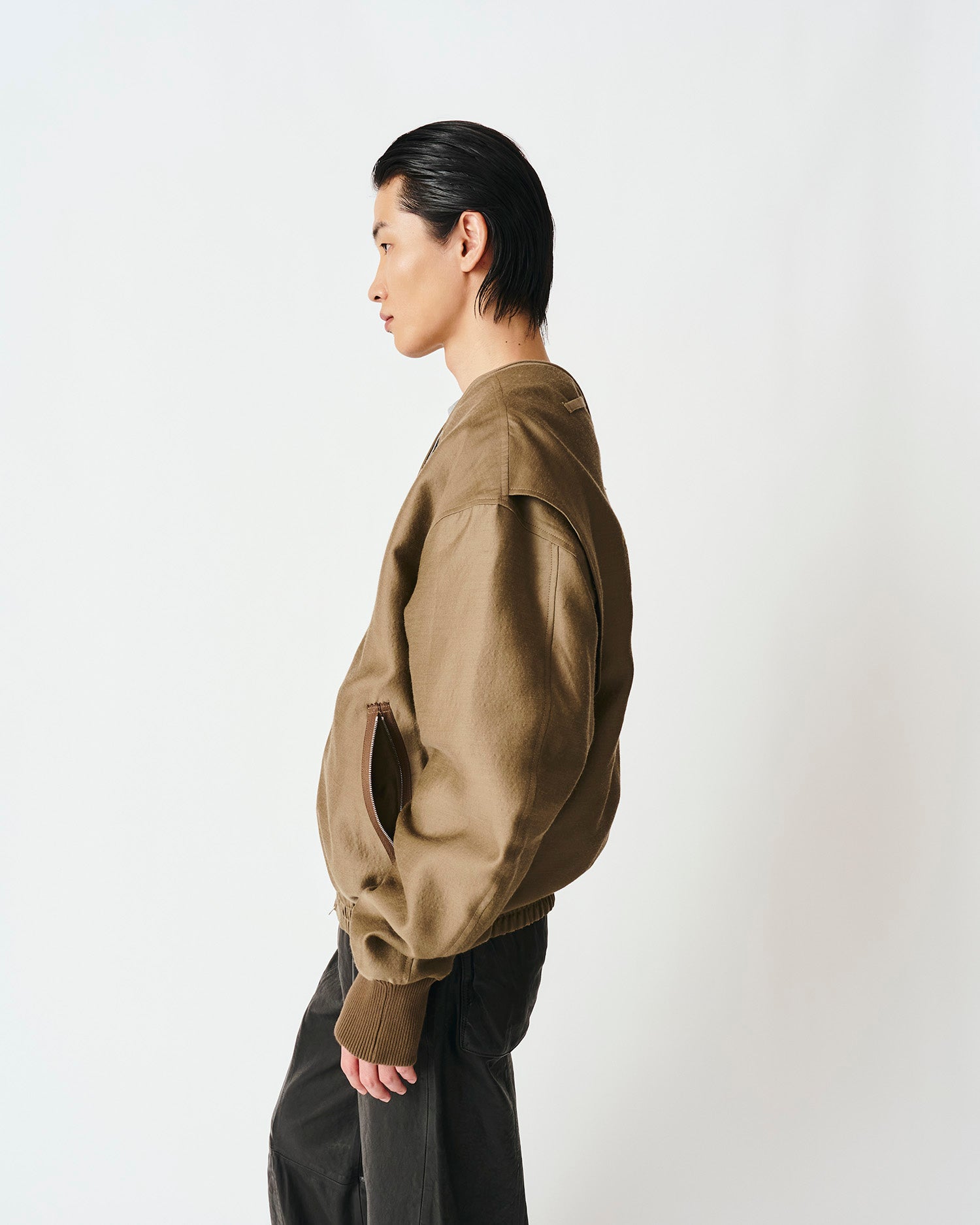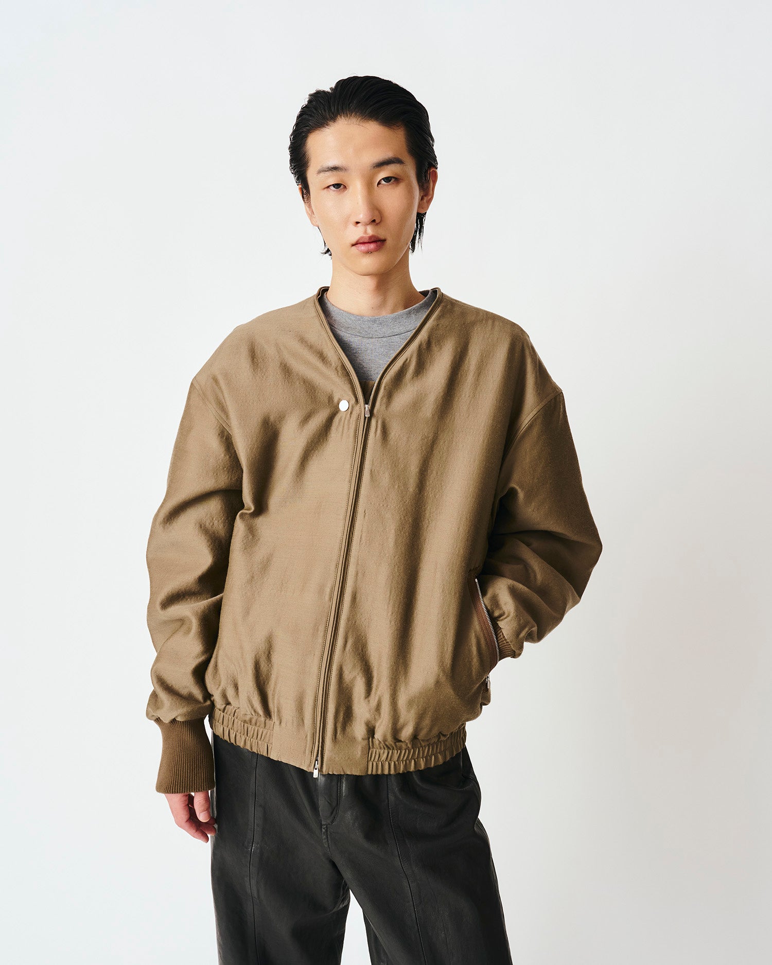 極薄のウールシルクの素材を使用したジップアップブルゾンです。