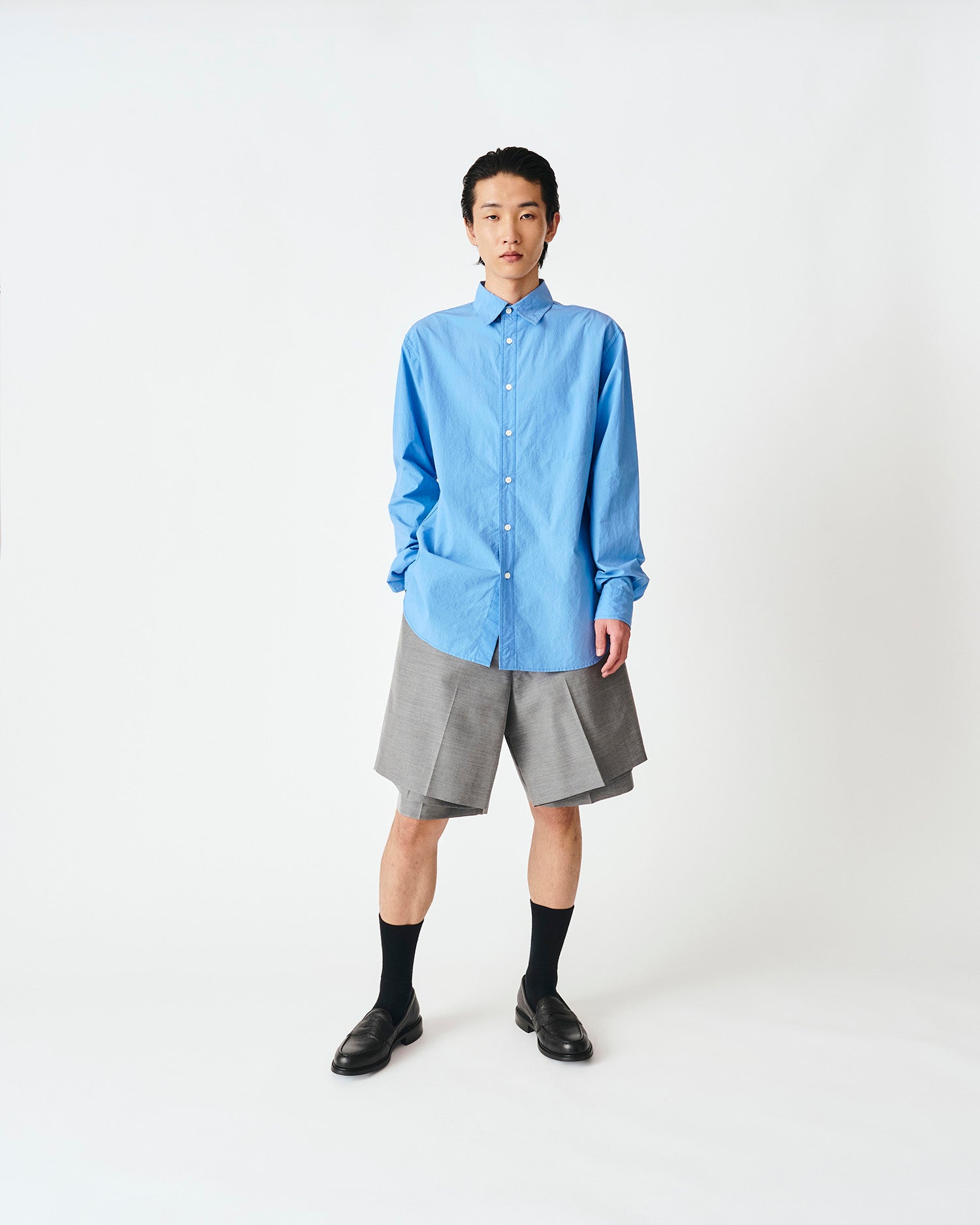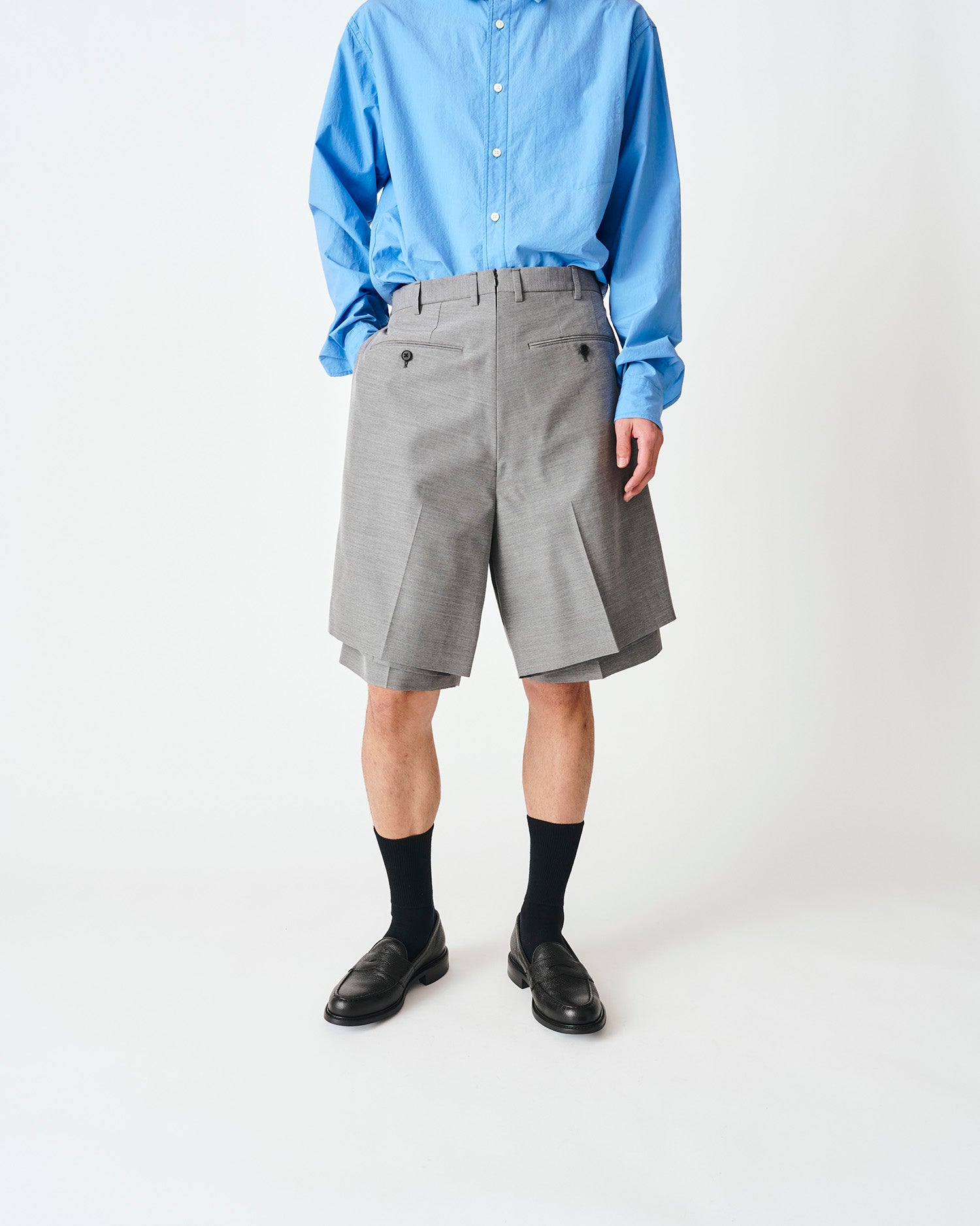 ウールシルクポプリンのサマーウールを使用した4本筒のパンツ。