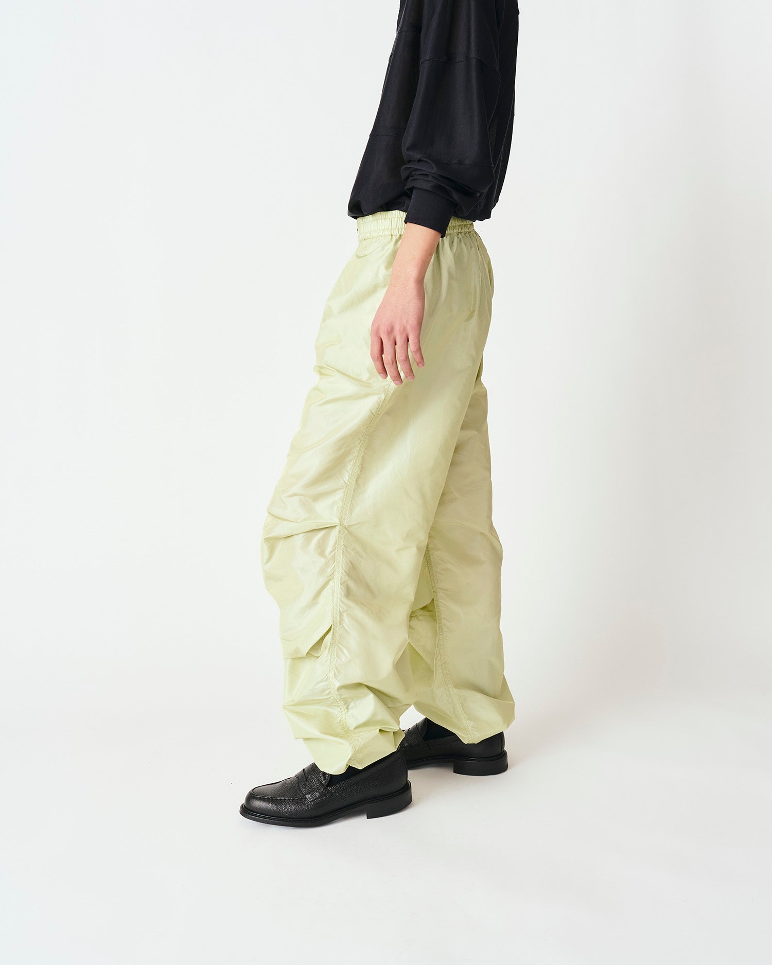 シルクタフタを使用したカーゴトラウザーズ。